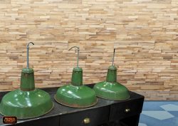 Lovely green enamel vintage pendant lights from the 1950’s (3 available). In fair vintage condition, the surface wear to the enamel adds character and emphasises the age of the items.