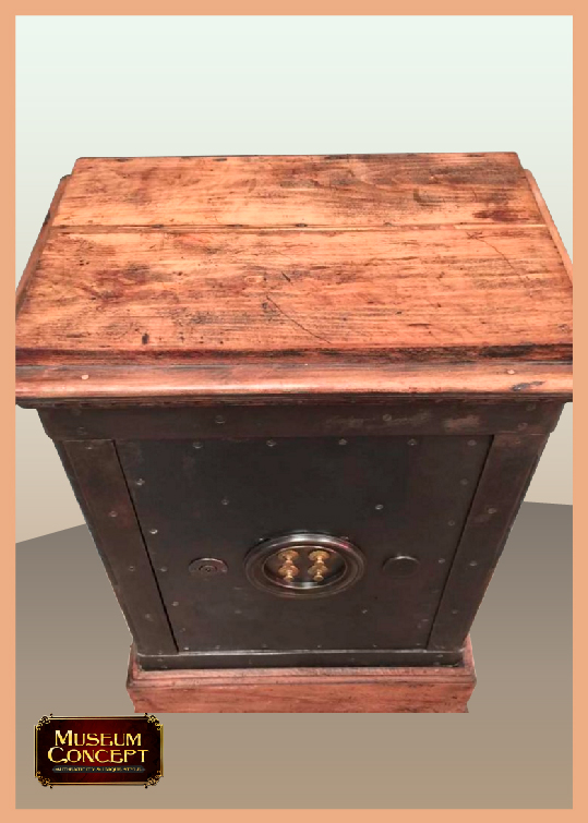 來自1850年具有歷史性的金屬與木製古董保險箱。它在實際的年齡呈現了最佳狀態,崇高的銅鏽精美的記錄了150多年的歷史。他搭配著非常實用的其鍵和四個字母的代碼。大小適合擺放在任何的空間。您可以將這個保險箱與另一個更大的擺放在一起,並創建一個絕佳的室內設計。相當別緻!